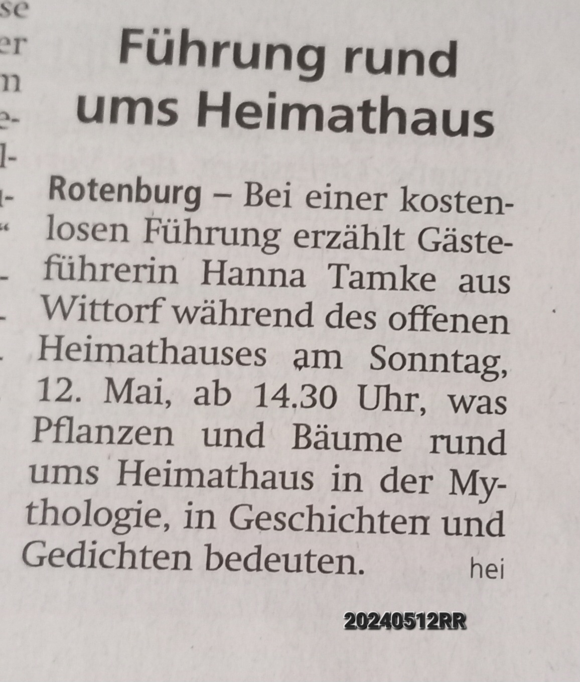 57 | Rotenburger Rundschau | Sa,11.05.24, | Führung rund ums Heimathaus |