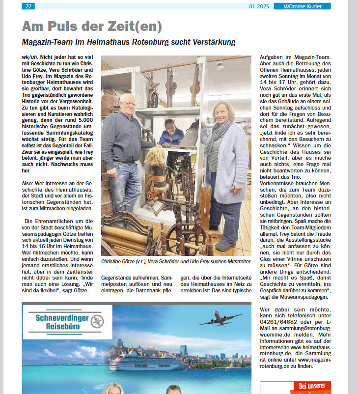 56 | Rotenburger Kreiszeitung | Fr,10.02.23, | Das offene Heimathaus lädt wieder ein |