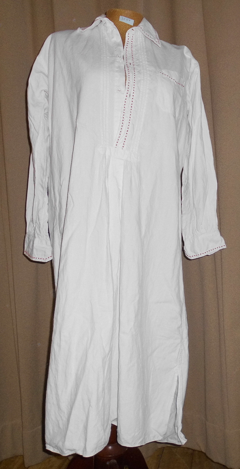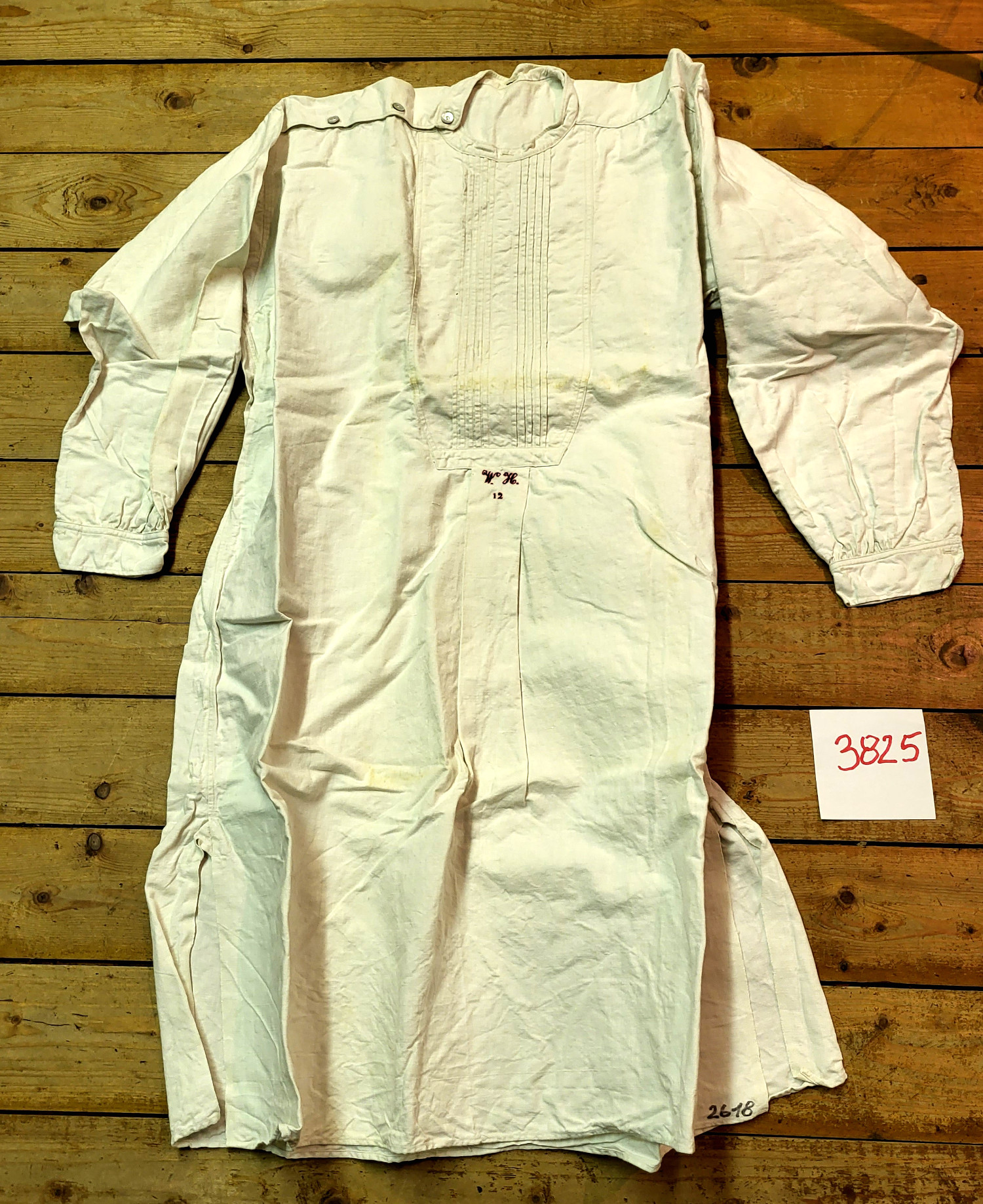 | 3 | 3646Eindeutige Nummer | Nachthemd/FrauenBezeichnung des Gegenstandes | gutZustand | | BekleidungBekleidung Landwirtschaft Handwerk & Industrie Handel & Gewerbe Hauswirtschaft Gesundheit Gemeinwesen Öffentliches Gut Persönliches Gut Spiel & Spielzeug Kunst & Kunstgeschichte Schriftgut Messen & wiegen Freizeit-Hobby-Sport Grabungsfunde Naturgut Waffen & Zubehör | OberkleidungUntergruppe zur Sachgruppe | 1900-1925Datierung des Gegenstandes | keine |