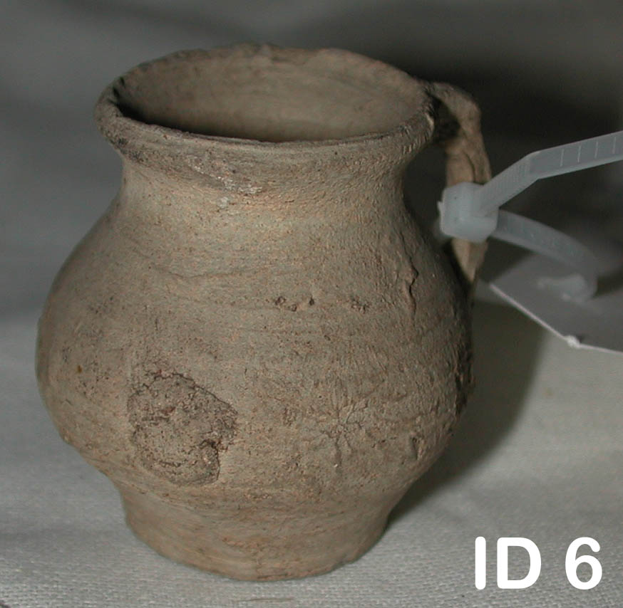 | 18 | 2783Eindeutige Nummer | KrugBezeichnung des Gegenstandes | Zustand | | HauswirtschaftBekleidung Landwirtschaft Handwerk & Industrie Handel & Gewerbe Hauswirtschaft Gesundheit Gemeinwesen Öffentliches Gut Persönliches Gut Spiel & Spielzeug Kunst & Kunstgeschichte Schriftgut Messen & wiegen Freizeit-Hobby-Sport Grabungsfunde Naturgut Waffen & Zubehör | Behältnisse & VasenUntergruppe zur Sachgruppe | Datierung des Gegenstandes | |
