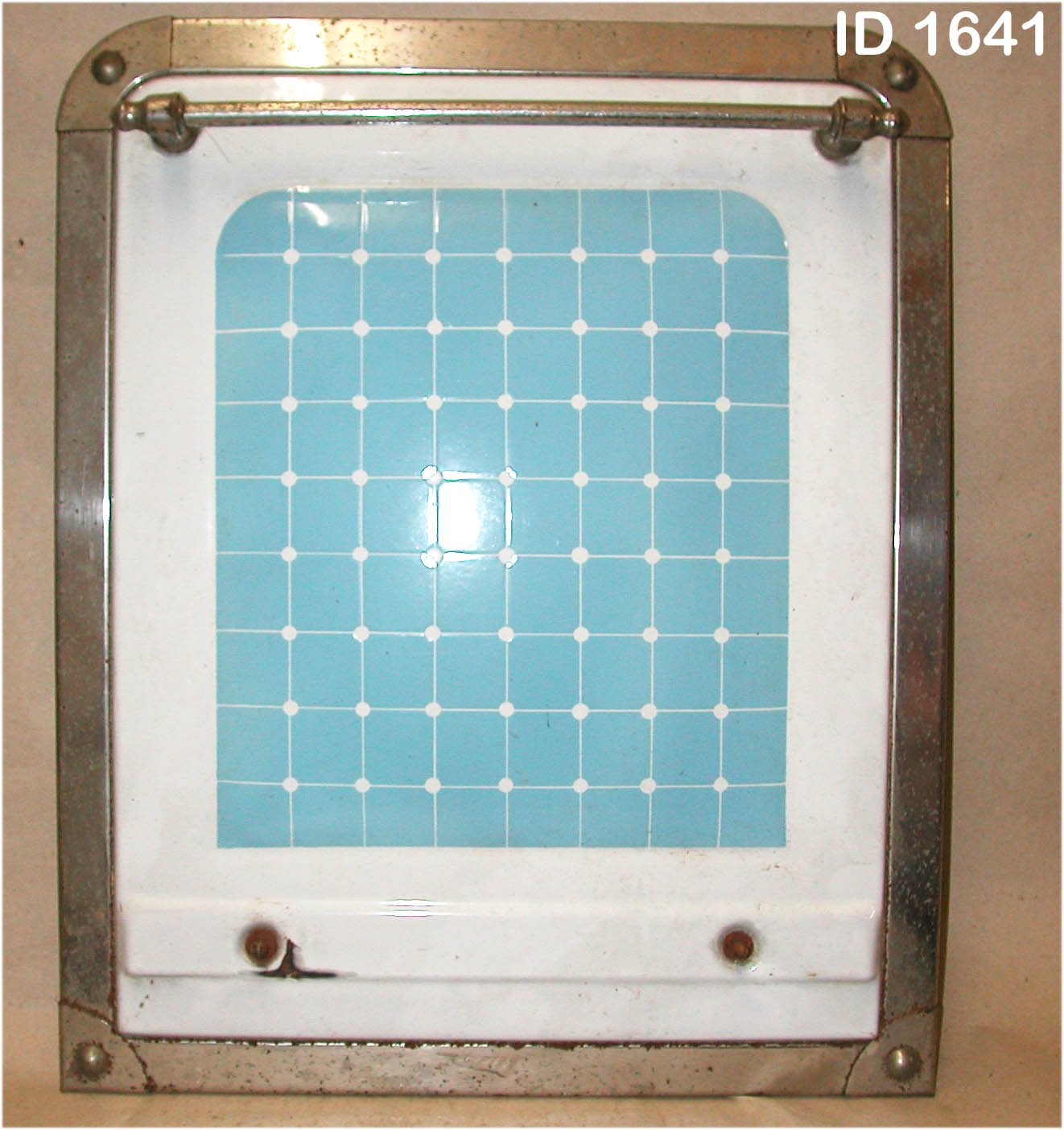 | 16 | 1641Eindeutige Nummer | WandblechBezeichnung des Gegenstandes | gutZustand | | HauswirtschaftBekleidung Landwirtschaft Handwerk & Industrie Handel & Gewerbe Hauswirtschaft Gesundheit Gemeinwesen Öffentliches Gut Persönliches Gut Spiel & Spielzeug Kunst & Kunstgeschichte Schriftgut Messen & wiegen Freizeit-Hobby-Sport Grabungsfunde Naturgut Waffen & Zubehör | MobiliarUntergruppe zur Sachgruppe | 1925-1950Datierung des Gegenstandes | |