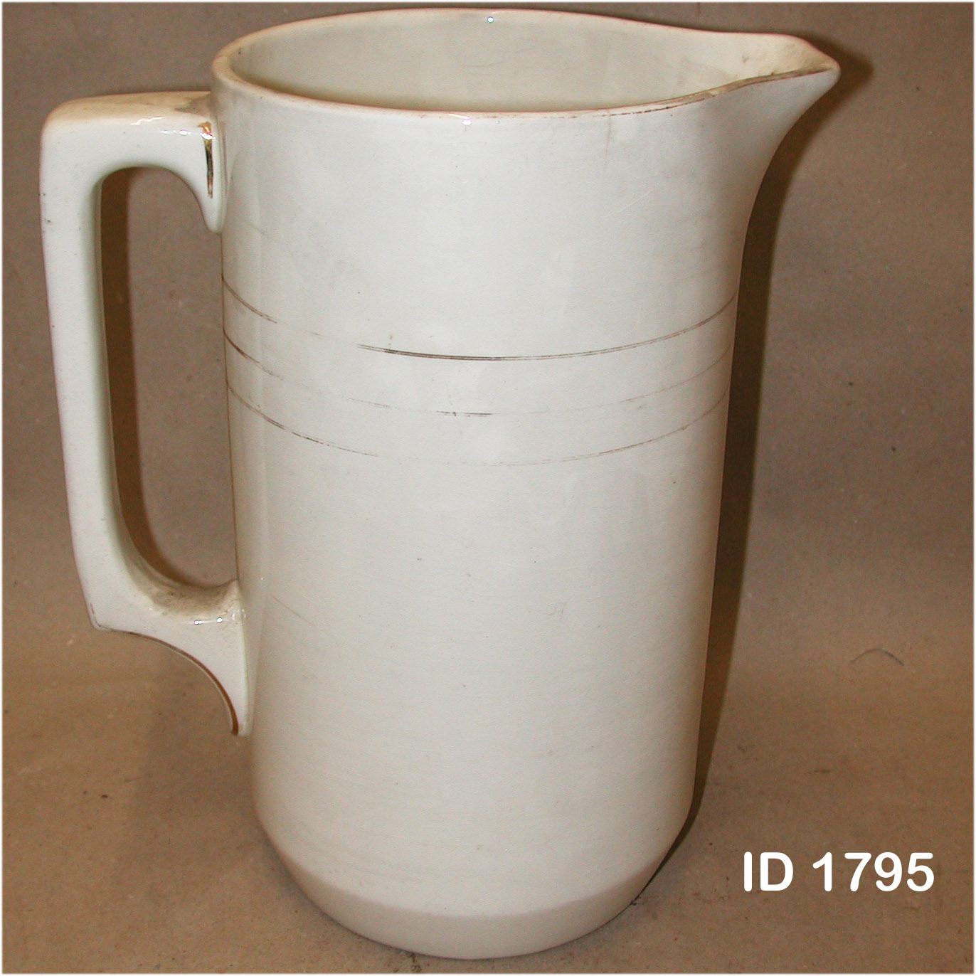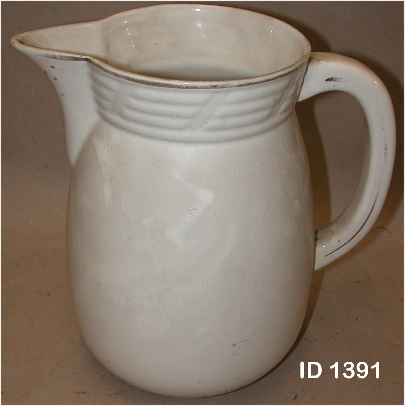 | 10 | 1613Eindeutige Nummer | KrugBezeichnung des Gegenstandes | Zustand | | HauswirtschaftBekleidung Landwirtschaft Handwerk & Industrie Handel & Gewerbe Hauswirtschaft Gesundheit Gemeinwesen Öffentliches Gut Persönliches Gut Spiel & Spielzeug Kunst & Kunstgeschichte Schriftgut Messen & wiegen Freizeit-Hobby-Sport Grabungsfunde Naturgut Waffen & Zubehör | BehältnisseUntergruppe zur Sachgruppe | 1875-1900Datierung des Gegenstandes | |