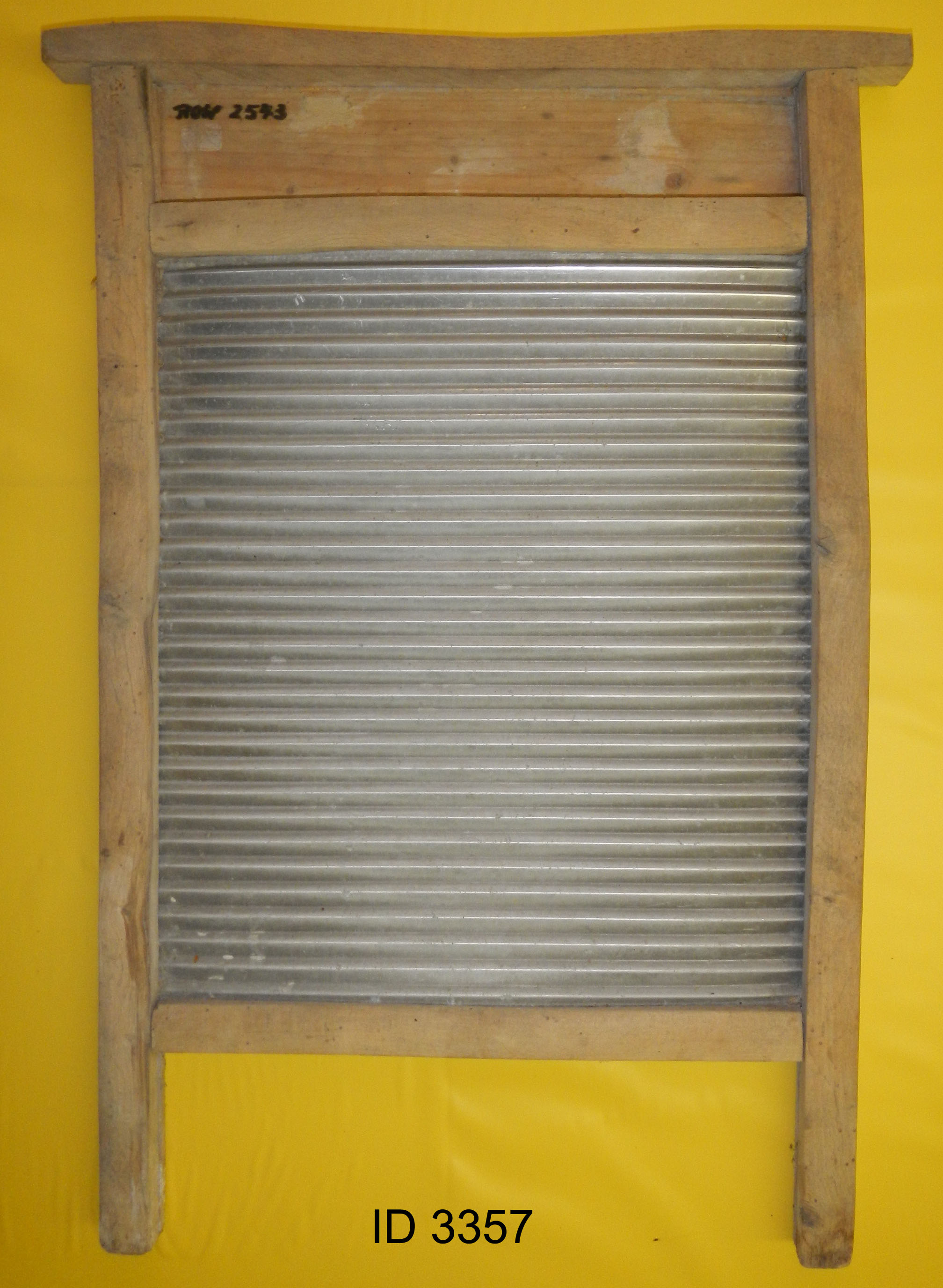 | 23 | 3357Eindeutige Nummer | WaschbrettBezeichnung des Gegenstandes | gutZustand | | HauswirtschaftBekleidung Landwirtschaft Handwerk & Industrie Handel & Gewerbe Hauswirtschaft Gesundheit Gemeinwesen Öffentliches Gut Persönliches Gut Spiel & Spielzeug Kunst & Kunstgeschichte Schriftgut Messen & wiegen Freizeit-Hobby-Sport Grabungsfunde Naturgut Waffen & Zubehör | WäschepflegeUntergruppe zur Sachgruppe | 1925-1950Datierung des Gegenstandes | |