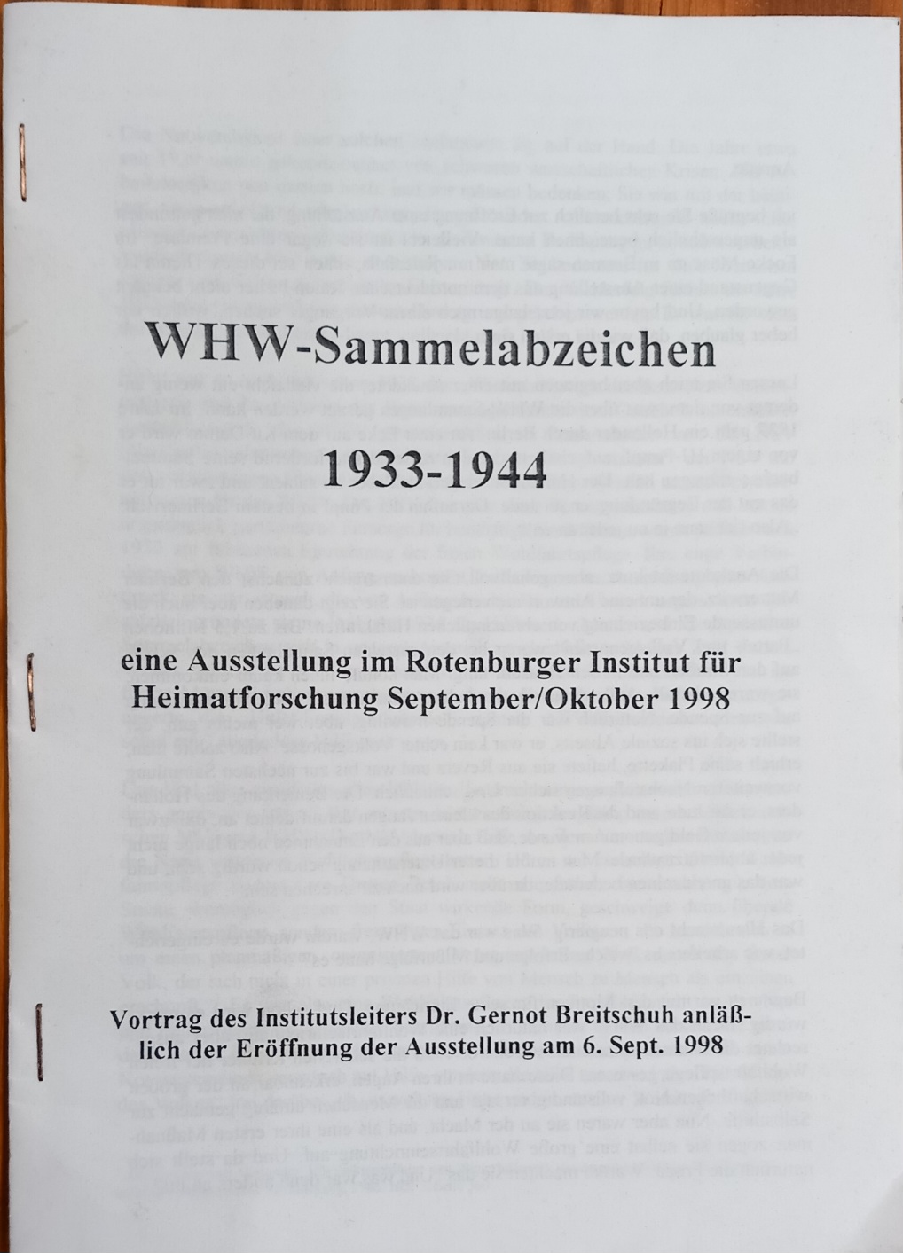 | 4 | 3905Eindeutige Nummer | Heft WHW SammelabzeichenBezeichnung des Gegenstandes | gutZustand | | GemeinwesenBekleidung Landwirtschaft Handwerk & Industrie Handel & Gewerbe Hauswirtschaft Gesundheit Gemeinwesen Öffentliches Gut Persönliches Gut Spiel & Spielzeug Kunst & Kunstgeschichte Schriftgut Messen & wiegen Freizeit-Hobby-Sport Grabungsfunde Naturgut Waffen & Zubehör | VerbändeUntergruppe zur Sachgruppe | 1933-1945Datierung des Gegenstandes |