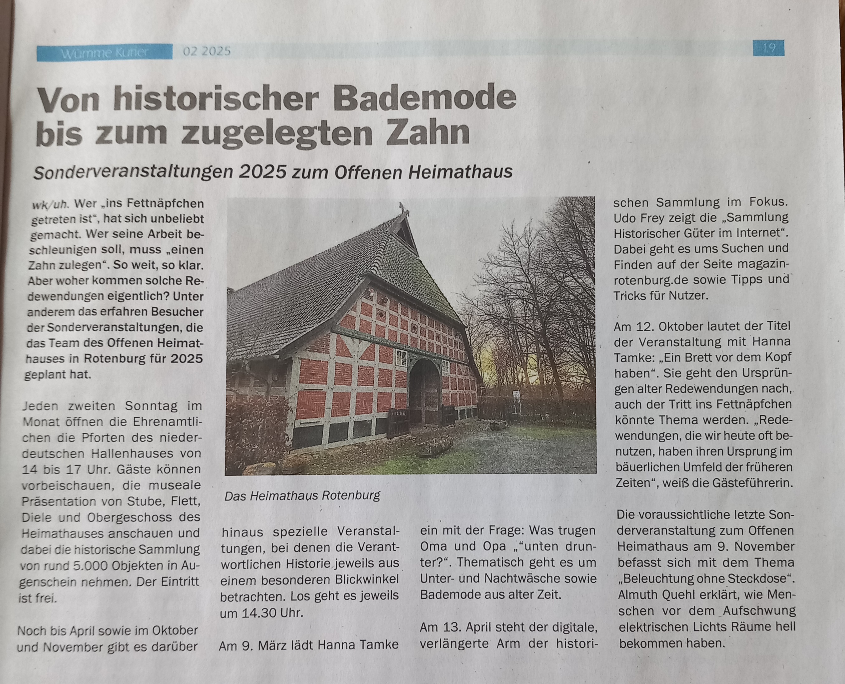 59 | Wümmekurier | Fr,28.02.25, | Von historischer Bademode bis zum zugelegten Zahn |