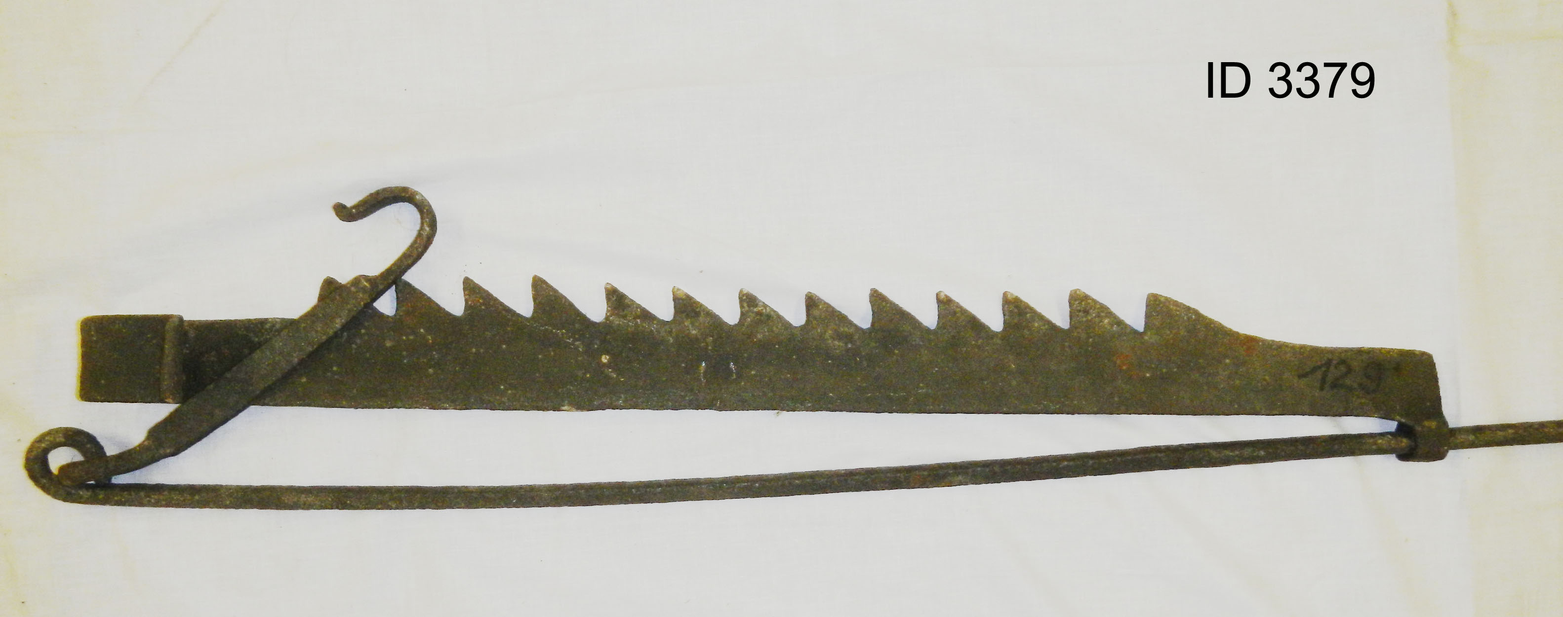| 7 | 3379Eindeutige Nummer | KesselhakenBezeichnung des Gegenstandes | Zustand | | HauswirtschaftBekleidung Landwirtschaft Handwerk & Industrie Handel & Gewerbe Hauswirtschaft Gesundheit Gemeinwesen Öffentliches Gut Persönliches Gut Spiel & Spielzeug Kunst & Kunstgeschichte Schriftgut Messen & wiegen Freizeit-Hobby-Sport Grabungsfunde Naturgut Waffen & Zubehör