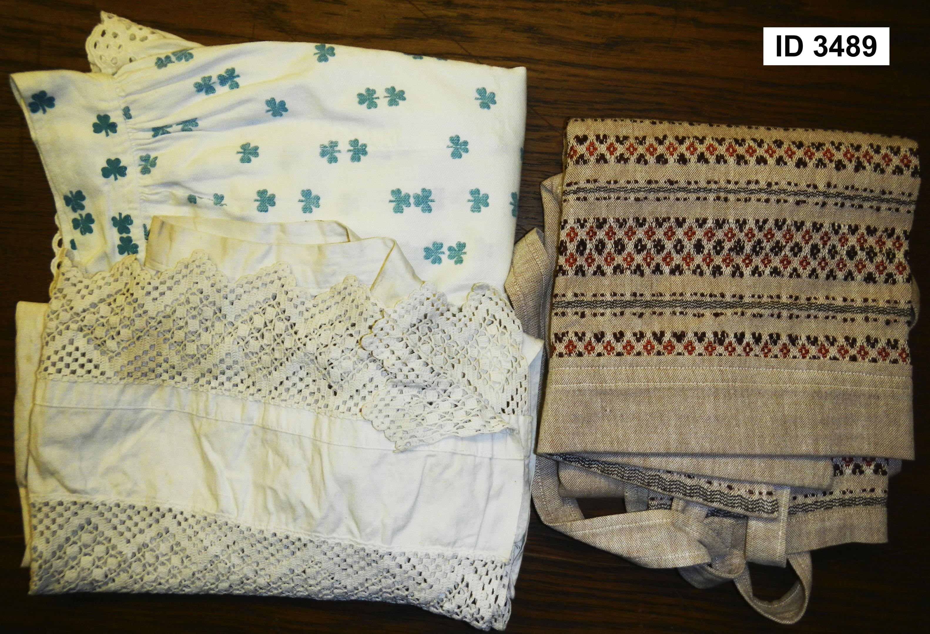 | 2 | 2839Eindeutige Nummer | SchürzeBezeichnung des Gegenstandes | Zustand | | BekleidungBekleidung Landwirtschaft Handwerk & Industrie Handel & Gewerbe Hauswirtschaft Gesundheit Gemeinwesen Öffentliches Gut Persönliches Gut Spiel & Spielzeug Kunst & Kunstgeschichte Schriftgut Messen & wiegen Freizeit-Hobby-Sport Grabungsfunde Naturgut Waffen & Zubehör | OberkleidungUntergruppe zur Sachgruppe | undefDatierung des Gegenstandes | |